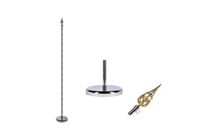 Il kit economico da sala ad 1 posto è formato dalla base cromata con relativo canotto, asta cromata da 200 cm in un unico pezzo e lancia neutra. Al posto della lancia è possibile avere il pomolo tondo dorato.